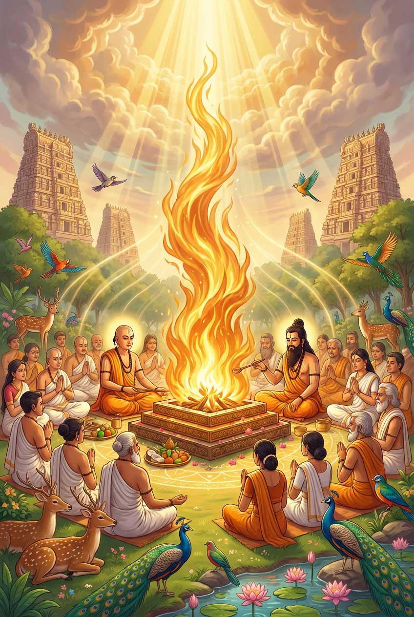 A Yagam is a superset of Homam’s, archana’s and all such religious practices combined. When very large set of people come together and focus their efforts to conduct such a great sacrifice, it is called a Maha Yagam. Such events always contribute to the benefit of the country as a whole – benefiting all beings (humans, animals, birds, plants and every such being). Changes to the environment is often physically experience-able by the participants and these positive vibrations last a very long time.