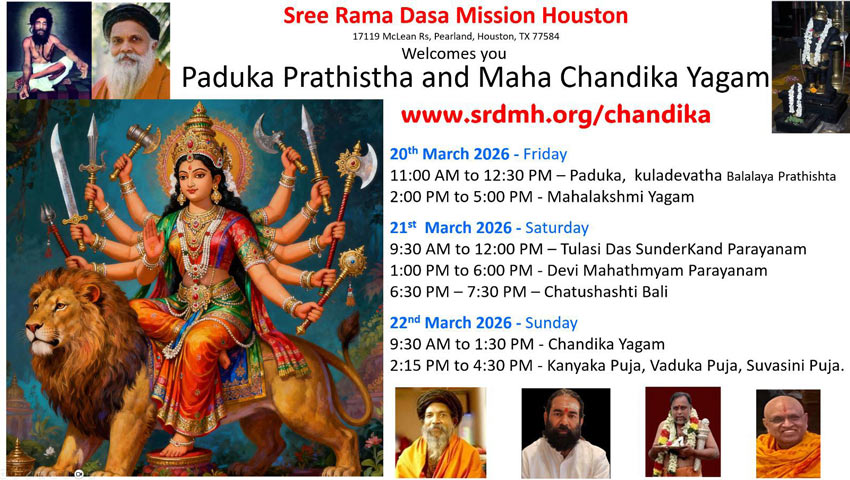 Sundarkand Parayan will be led by Dr. Ramananda Saraswathy, of International Society for Spiritual Advancement from Washington, DC. Dr. Saab has dedicated his life for the spread of Sanatana Dharma and Bhakti following the path of Lord Ram. Some of his past events can be seen here.