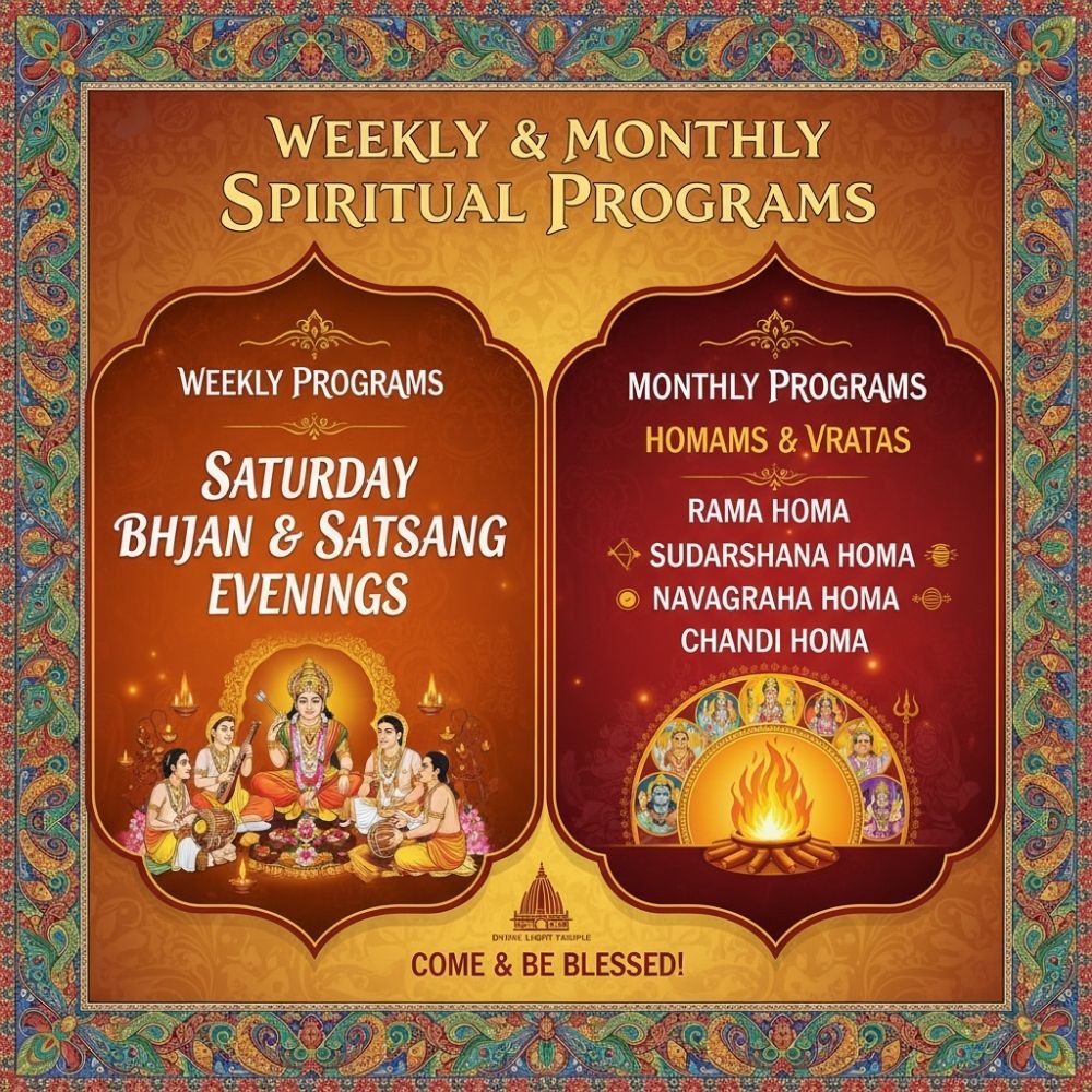 Experience devotion, culture, and community at our Temple. A sacred space where festivals come alive with bhakti, traditional rituals, and cultural gatherings.